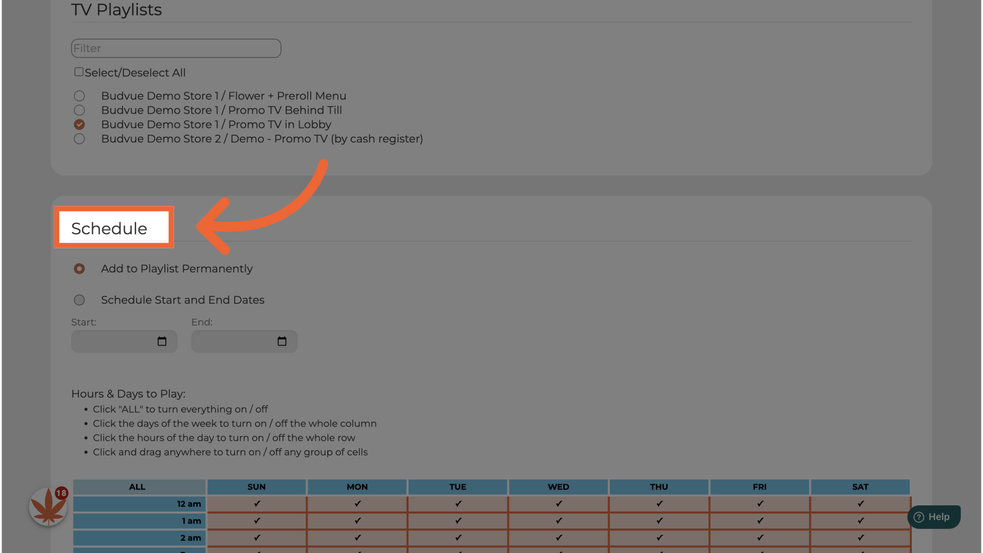 Then you will select which TV playlist you would like your promotion to play on.